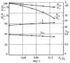 Зависимость изменения номинальных значений коэффициентов н.i/ н.о, и max диаметрального вентилятора от относительного диаметра вала (%) |