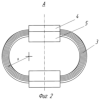 Зная средний радиус кривизны многослойных пакетов лент 3, число витков, ширину, угол ориентации плоскостей витков, модуль упругости ленты, из которой изготовлены пакеты, по известным формулам сопротивления материалов определяют жесткостные характеристики виброизолятора в трех взаимноперпендикулярных направлениях. При этом, варьируя угол ориентации плоскостей витков и ширину многослойных пакетов лент 3, обеспечивают равночастотность виброизолятора по всем направлениям восприятия нагрузки. Это очень важно для того, чтобы не допустить возникновения дополнительных резонансов при широкополосном возбуждении объекта виброзащиты. Расчеты показывают, что для обеспечения равночастотности виброизолятора угол ориентации витков составляет величину приблизительно 82° (фиг.5).