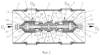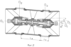 Величина (фиг.2) сдвиговых смещений концевых патрубков зависит от длины L1 сильфонов и пропорциональна длине L2 промежуточной трубы. Размещение разгрузочного устройства внутри компенсатора несколько загромождает его проходное сечение, но существенно сокращает диаметральные габариты и снижает его массу.