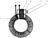 Витки части 7 обмотки 1, в которые входит стержневой сердечник 5, охватывают и кольцевой сердечник 4. Это эквивалентно тому, что данные витки охватывают магнитный сердечник большего сечения, чем сечение кольцевого сердечника. Такой факт является определяющим в повышении индуктивности и добротности предложенной катушки индуктивности с подстройкой.