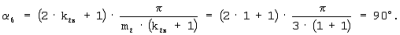 – для обмоток 19 (фиг.1) и 46, 48, 502, 52, 19 (фиг.2) – сумме угла поворота i-го внутреннего магнитопровода (9 – фиг.1; 9, 39, 40, 41, 42 – фиг.2) вокруг оси симметрии 22 (фиг.1, фиг.2) относительно магнитопроводов с первичными обмотками (1 и 2 – фиг.1; 1, 2, 27, 28, 29, 30 – фиг.2), который выбирается равным и угла смещения вторичных многофазных обмоток 19 (фиг.1) и 46, 48, 502, 52, 19 – (фиг.2) вокруг оси симметрии 22 (фиг.1, фиг.2) относительно вторичных многофазных обмоток 20 (фиг.1) и 45, 47, 49, 51, 20 (фиг.2), который выбирается равным