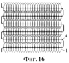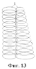 Более того, и в пределах каждого ряда пружины 1 могут быть расположены соосно, с чередованием ориентации на 180° (см. фиг.12). В последнем случае листовая броня формируется как набор параллельных друг другу “гирлянд” из коротких конических пружин разной ориентации. Такая же форма, впрочем, может быть достигнута и навивкой длинных пружин с немонотонно, волнообразно изменяющимся диаметром витков.