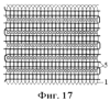 на фиг.17 – схема брони с U-образными проволочными вилками в качестве соединительных элементов, вид в плане;