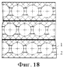 на фиг.18 показана схема многослойной брони с шахматным расположением параллельных друг другу цилиндрических пружин, поперечный разрез;
