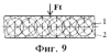 на фиг.9 – то же, с непосредственно взаимосвязанными пружинами, фрагмент поперечного разреза брони, где Ft -импульсное воздействие на броню пули, осколка или холодного оружия;