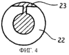 Предпочтительные конфигурации микродатчика (1) массы на основе кристалла кварца и узла (36) микродатчика массы на основе кристалла кварца представлены на фигурах 4 и 5. В этом воплощении чувствительным к массе элементом пьезоэлектрического микродатчика массы является кристалл (22) кварца, вырезанный в направлении AT (т.е. под углом 35,15° к оси Y кристалла при вращении его вокруг оси X) с осажденными из паровой фазы электродами (23), (24) и (25). Электрод (23) представляет собой рабочий электрод, поскольку он погружается в исследуемый флюид во время измерений.