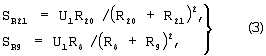 Абсолютные значения абсолютной чувствительности моста по определяемому сопротивлению датчика 21 и по регулируемому резистору 9 определяется соответственно по формулам
