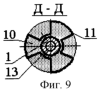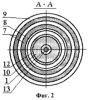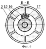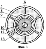 Шлифовальный круг 3 относится к сборным торцовым кругам, т.к. состоит из абразивно-алмазных кольцевых сегментов 5, закрепленных на металлических пластинах 6, например, путем приклеивания. Количество пластин 6 равно количеству сегментов 5, при этом профиль пластин определяется профилем кольцевых сегментов. Сами пластины крепятся путем вулканизации к торцу торообразной полой внутри упругой оболочки 7, закрепленной на ступице 8 также путем вулканизации. По мере износа абразивно-алмазных кольцевых сегментов 5 в торообразную полую внутри упругую оболочку 7 закачивается через штуцер и обратный клапан (не показаны) сжатый воздух, восстановливая первоначальное положение рабочих торцов сегментов 5 шлифовального круга 3 относительно режущего торца иглофрезы 1. Ограничителем при расширении упругой оболочки 7 является кольцо 9, состоящее из двух втулок, из которых одна закреплена на ступице 8 неподвижно, а вторая – свободно, позволяющих увеличить общую высоту кольца. Такое же свободно устанавливаемое кольцо имеется и с внутренней стороны упругой оболочки.