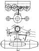 Рули установлены на V-образной державке в ускоряемой винтами части потока (граничные и нулевая линия тока ускоренного потока на чертеже показаны штриховыми линиями). Привод рулей ручной, непосредственно ручками управления 12.
