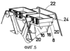 Геометрия поворотных пальцев еще раз показана на фиг.11, из которой видно, что верхняя концевая поверхность 60 поворотных пальцев 42, прилегающая к ящику 8, представляет собой поверхность в форме части цилиндра, так что, следовательно, самая передняя точка 62 каждого поворотного пальца 42 движется по частичной круговой траектории 64, в результате чего возникает входная кривая, предотвращающая при складывании эффект зажатия. Также выполнена криволинейной направленная вниз поверхность 66 поворотных пальцев 42, т.е. поверхность, соприкасающаяся с кромкой 56 набегания и сбегания боковых направляющих 40 для откидывания поворотного пальца 42 из положения соответственно на фиг.11 и 7 в показанное на фиг.8 положение готовности, так что движение этой служащей в качестве управляющей кромки поверхности 66 относительно кромки 56 набегания и сбегания происходит без проблем.