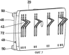 Из фиг.11 видно также, что в кассете 46, в которой установлены поворотные пальцы 42, предусмотрена еще одна пластина 70, которая препятствует откидыванию поворотных пальцев 42 за пределы показанного соответственно на фиг.11 и 7 положения. Возможен также любой другой вид ограничения возможности поворота поворотных пальцев 42, например за счет соответствующей формы прорезей 72 в удерживающих пластинах 20.