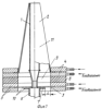Устройство подачи расплава горных пород или стекла и формования непрерывных волокон представлено на фиг.1 и 2, где на фиг.1 – схема питающего устройства со стыковочным фланцем в верхней части фильерного питателя; на фиг.2 – то же, без стыковочного фланца.