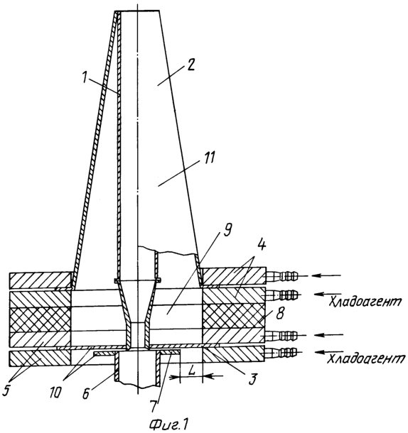 Недостатком данного устройства является то, что оно не обладает достаточной надежностью и не позволяет эксплуатировать данное устройство в течение длительного времени, имея при этом стабильные показатели истечения расплава базальта.