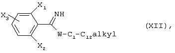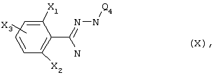 д) для получения соединения формулы (I), в котором фенильная группа, замещенная радикалами X1, Х2 и Х3, находится в 3-м положении триазинового кольца, соединение формулы