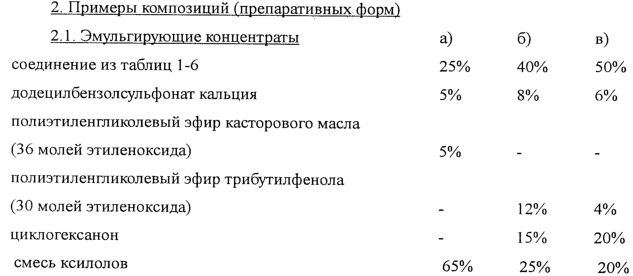 Согласно изобретению предпочтительны прежде всего соединения формулы (I), перечисленные ниже в таблицах 1-6 (см. в конце описания), при этом особо предпочтительны соединения формулы (I), указанные в примерах синтеза.