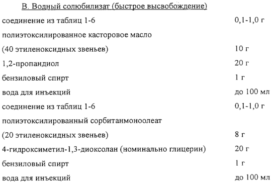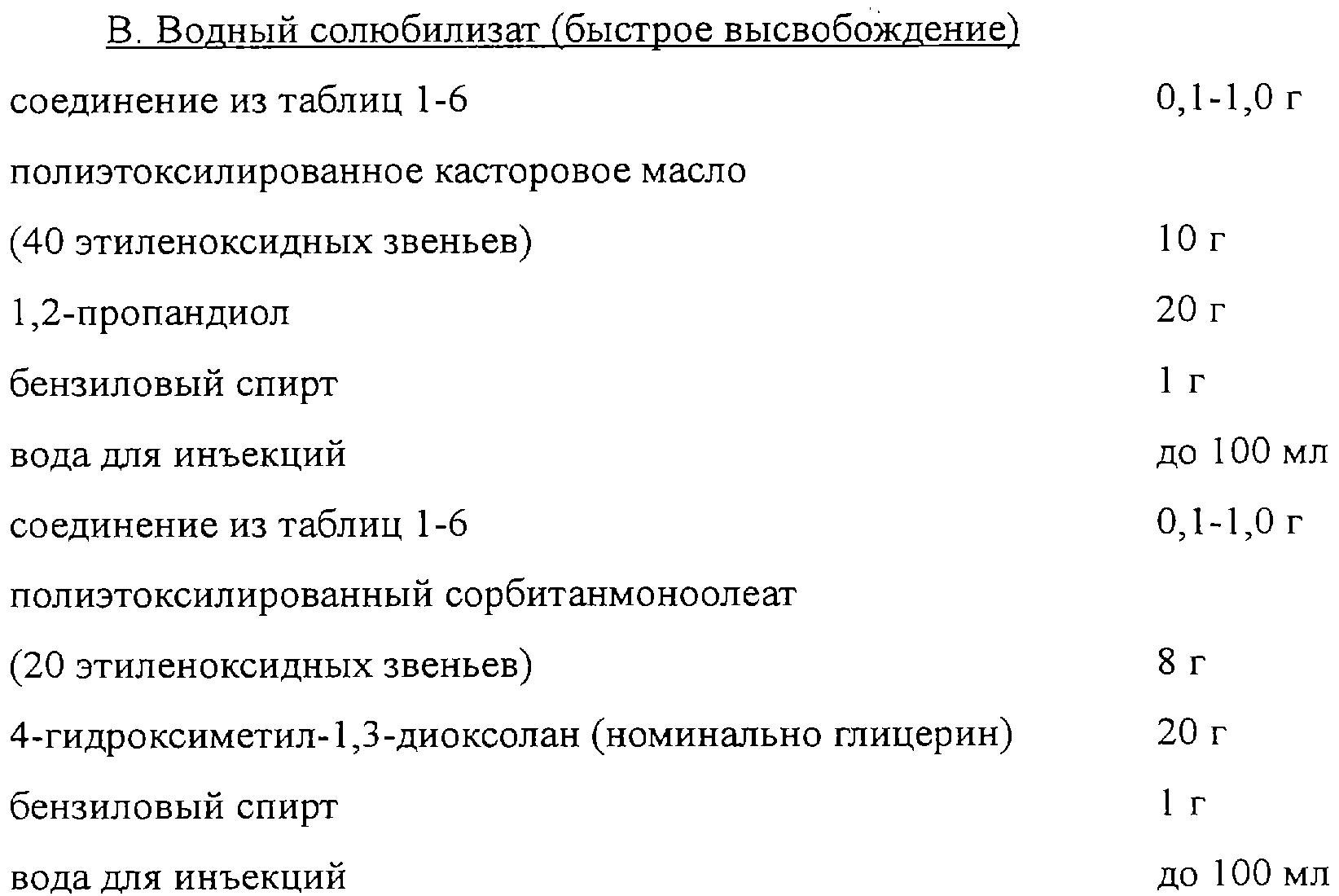 В состав описанных выше композиций можно также включать другие биологически активные вещества или добавки, обладающие нейтральными свойствами по отношению к соединениям формулы (I) и не оказывающие нежелательного воздействия на подвергаемое лечению животное-хозяина, а также минеральные соли или витамины.