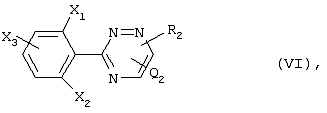 б) для получения соединения формулы (I), в котором А означает простую связь, а фенильная группа, замещенная радикалами X1, Х2 и Х3, находится в 3-м положении триазинового кольца, два эквивалента соединения формулы