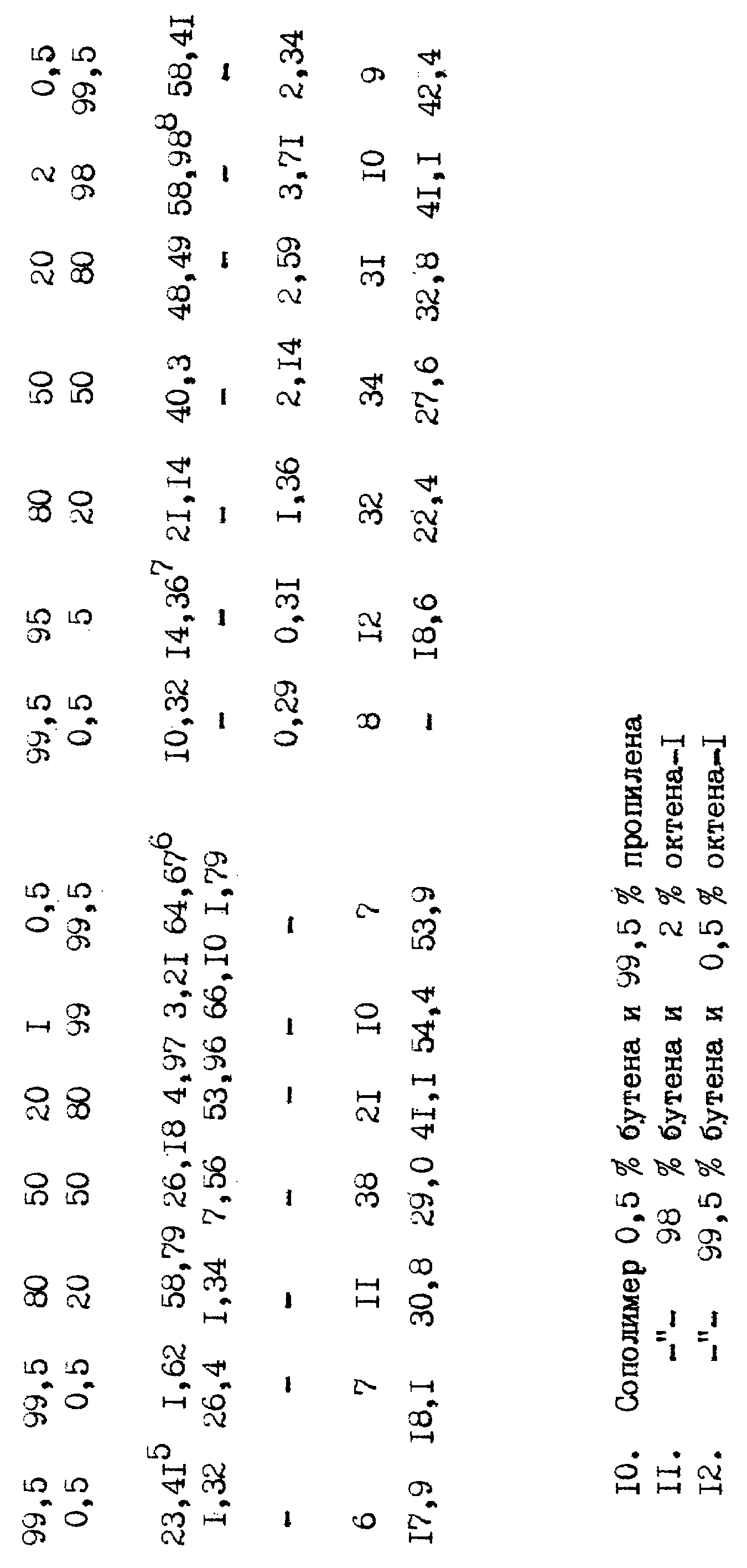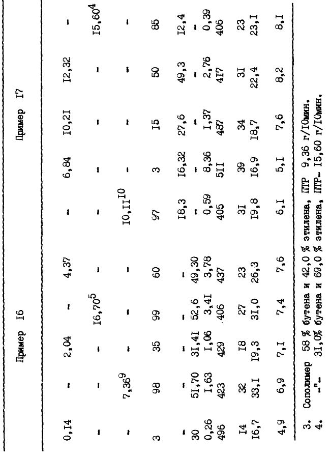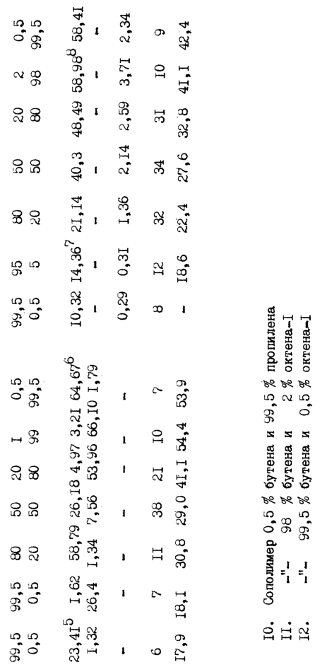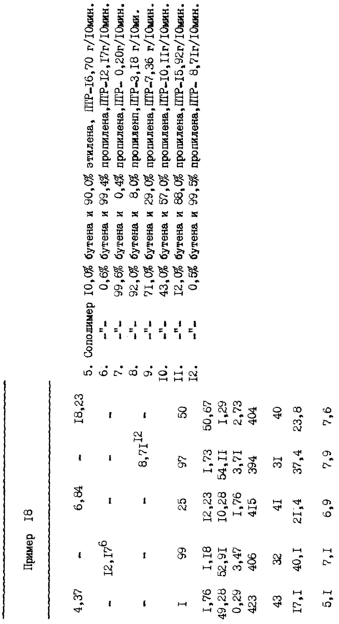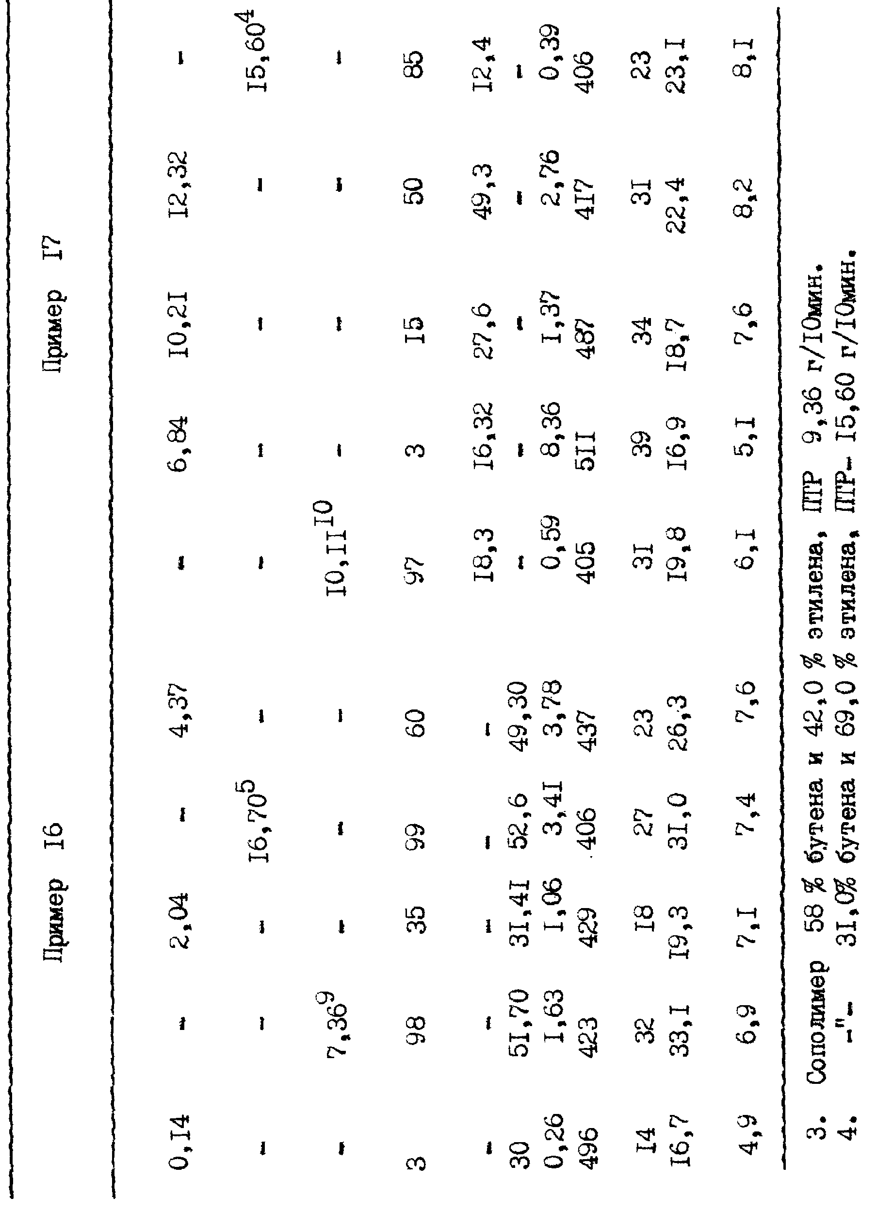 Определение уровня высокоэластической деформации полимеров и температуры их текучести проводили по общепринятой методике определения степени эластичности полимеров по термомеханическим кривым (ТМК), снятым на приборе для снятия термомеханических кривых типа весов Цейтлина, при одноосном сжатии и при нагреве образцов от -50 до +180°С при скорости нагрева 2°С/мин с автоматической записью результатов. Нагрузка на шток составляла 2 мПа (Ронкин Г.М. Каучук и резина, 1979, №7, с.5-11). Методика определения остальных характеристик модифицированных полимеров бутена и СБ, указанных в таблицах, описаны в этом источнике.