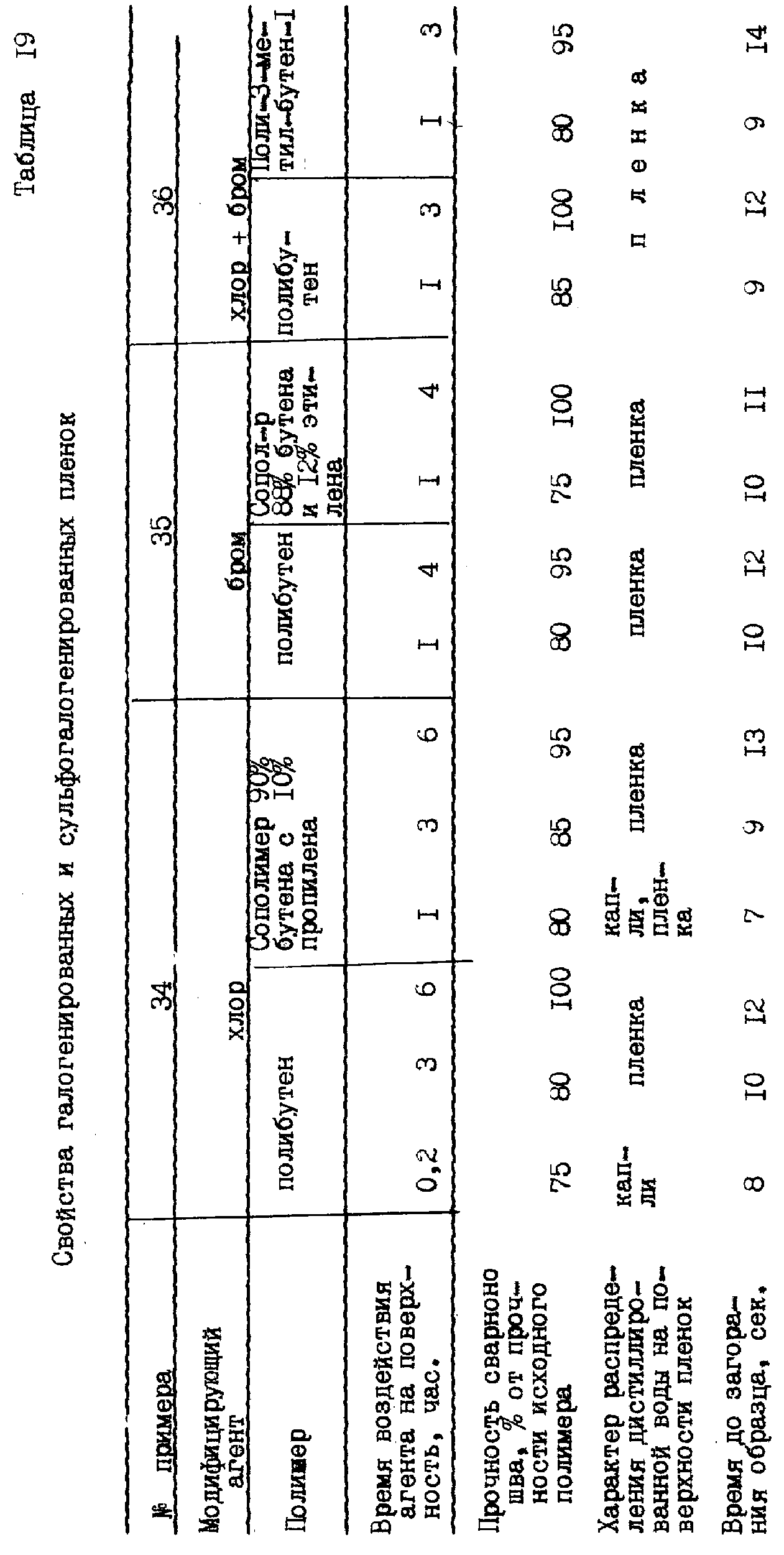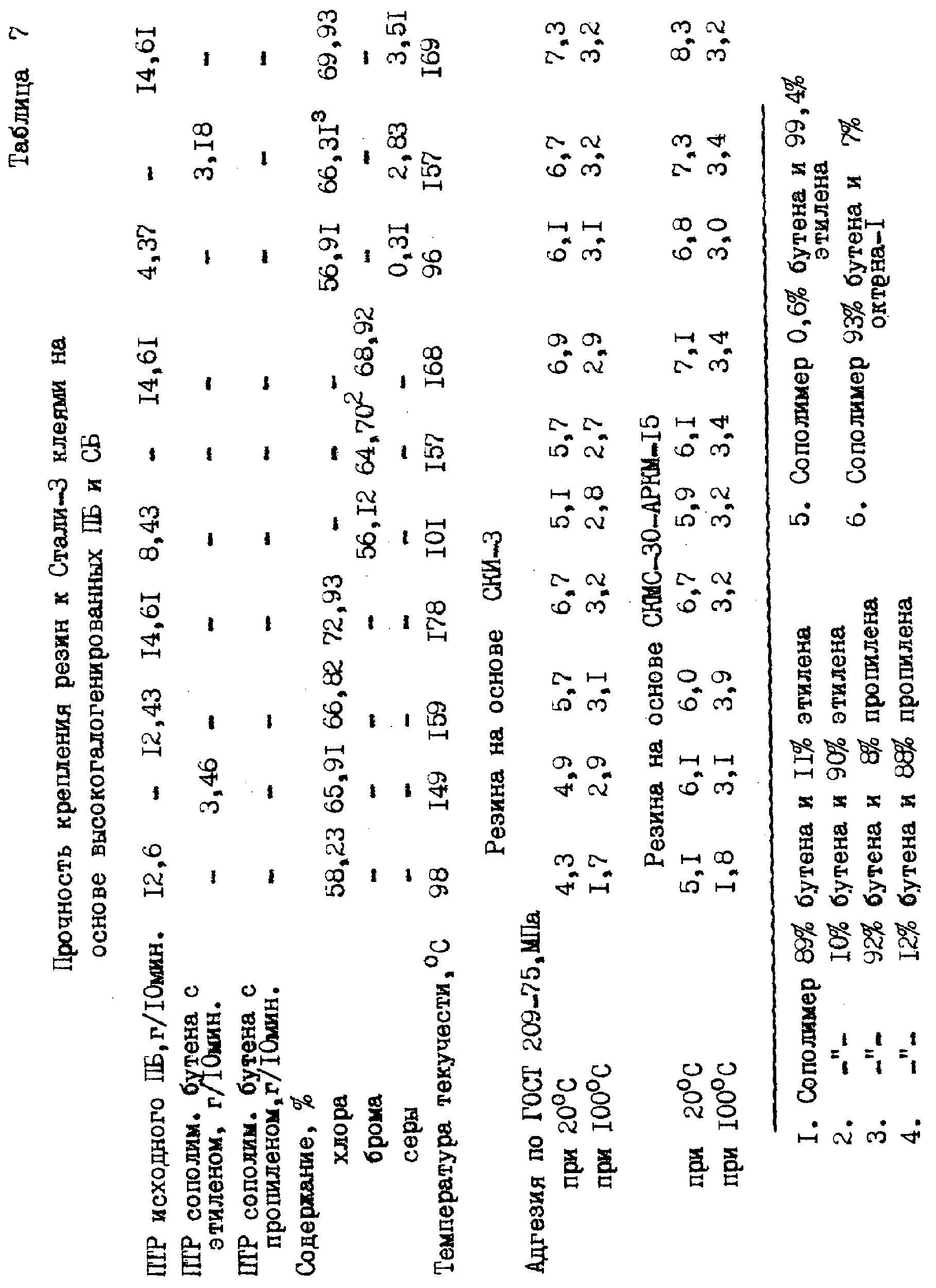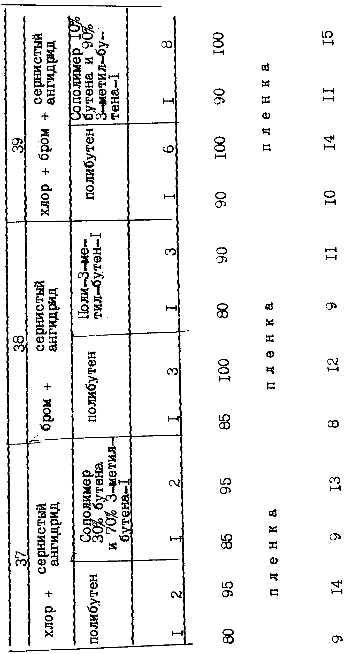 1. Галогенированный или галогенсульфированный (со)полимер бутена-1, полученный в растворе тетрахлорэтана или хлорбензола и содержащий химически связанные хлор, и/или бром, или хлор и серу, или бром и серу, или одновременно хлор, бром и серу в виде SO2Сl – и SO2Вr-групп, при этом содержание связанного хлора и/или брома составляет 1-73 мас.%, серы 0,2-4,0 мас.%.