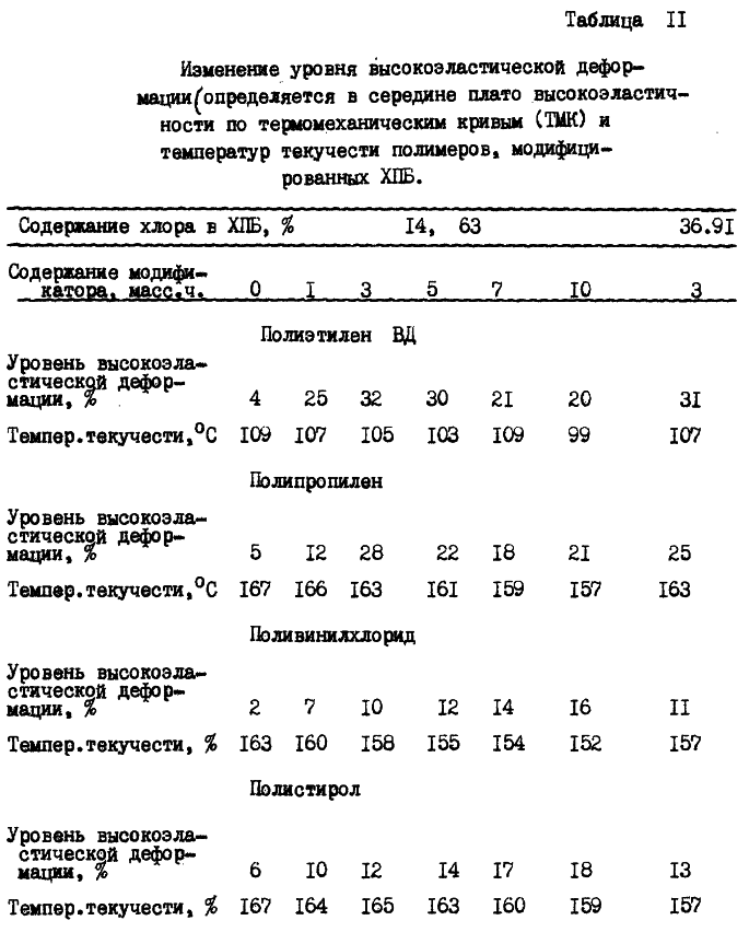 Следует отметить, что уровень высокоэластической деформации ХПБ, полученных хлорированием в хлорбензоле, выше, чем у ХПБ,