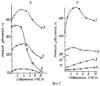 Фиг.5. Изменение сопротивления разрыву (А) и относительного удлинения (Б) смесей полимеров с ХПБ (14,63% хлора) в зависимости от содержания ХПБ в смеси.