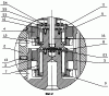 При этом из фиг.3 видно, что одни 19 и другие 21 сателлиты установлены соответственно на осях 58 и 59, на которые опираются подшипники 60 и 61 третьей группы, между которыми расположены четвертые втулки 62, 63 (всего шесть по количеству сателлитов), причем оси 58 и 59 застопорены первыми и вторыми винтами 64, 65 соответственно.