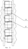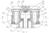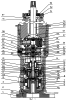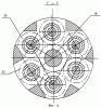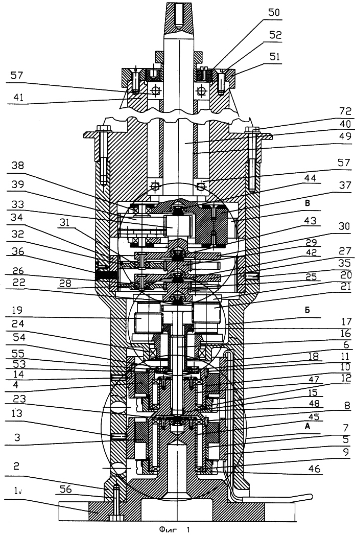 Между подшипниками 57 седьмой группы установлена третья втулка 49, при этом верхний подшипник запирается третьей гайкой 50, которая соединена резьбовым соединением с крышкой 51. Крышка 51 жестко соединена с опорой 41 посредством винтов 52.