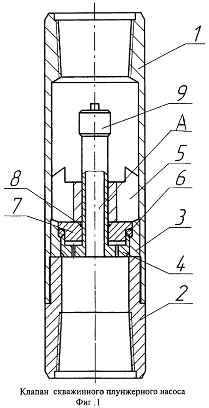 1. Клапан плунжерного скважинного насоса, содержащий корпус, седло, пустотелый затвор в виде цилиндрической втулки с лопастями и герметизирующим кольцом, отличающийся тем, что в теле головки затвора выполнена кольцевая полость, гидравлически связанная с подклапанным пространством, в которой размещен хвостовик, которым снабжена нажимная втулка, а седло клапана выполнено двухступенчатым по диаметру, причем в нижней, меньшей, части в рабочем положении размещается головка затвора, в верхней, большей – подвижная нажимная втулка, причем нажимная втулка взаимодействует с герметизирующим кольцом, выполненным из полиуретана.