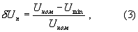 где Uном и Umin – номинальное и минимальное действующие значения напряжения за фиксированный отрезок времени.