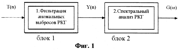 Затем осуществляют спектральный анализ PKГ (блок 2).