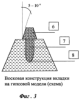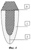Вкладку моделируют на модели (фиг.3), причем наддесневая часть (6) моделируется из воска с углом конвергенции боковых поверхностей в сторону срединной оси зуба от 5 до 10°, при этом, чем меньше высота культи, тем меньше угол конвергенции, а восковой штифт (7) полностью соответствует форме отпрепарированного канала (3) корня зуба (1) – стенки параллельны, конец (8) штифта (7) имеет форму полусферы. Нами экспериментально и на практике установлено, что чем меньше высота культи вкладки, то требуется меньший угол конвергенции боковых поверхностей для лучшей фиксации искусственной коронки на культе вкладки.