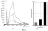 Пациенту Ш., 22 года, с диагнозом угревая сыпь 4 степени, локализация – лицо, шея, рубцы в заушной области. Перед аппликацией препарата пораженные участки кожи, на которые предполагалось наложить аппликатор, облучали диффузно светом с длиной волны 640 нм. На пораженные участки кожи лица был наложен аппликатор, смоченный в 15% растворе 5-АЛК. Аппликатор покрывали влагонепроницаемой повязкой и выдерживали на коже в течение 2 часов. Флюоресценция АЛК-индуцированного ПП IX на пораженных участках кожи после выдержки с аппликатором, содержащим 5-АЛК, показана на фигуре 1А (спектр №3), концентрацию АЛК-индуцированного ПП IX отражает столбец №3 (фиг.1Б). Затем аппликатор удаляли и облучали обработанные участки диффузно светом с длиной волны 630±10 нм и плотностью энергии 200 Дж/см2, и точечно светом с длиной волны 630±10 нм и плотностью энергии 1200 Дж/см2, а также проводили дополнительное облучение с помощью источника света на основе металлогалоидной лампы MHR-100, BLV (Germany) светом с длиной волны 425±10 нм. Точечное облучение проводили полупроводниковым лазером с длиной волны б30±10 нм до уменьшения уровня концентрации ПП IX ниже терапевтических значений. Флюоресценция АЛК-индуцированного ПП IX на пораженных участках кожи после облучения показана на фиг.1А (спектр 2), концентрацию АЛК-индуцированного ПП IX отражает столбец №2 (фиг.1Б). Из сопоставления спектров №3, №2 и соответствующих им столбцов на диаграмме видно, что концентрация АЛК-индуцированного ПП IX находится за нижней границей интервала терапевтических значений, определяемого исходя из практики проведения ФДТ, а следовательно, дальнейшее облучение не будет иметь лечебного эффекта. Для сравнения на фиг.1А приведен спектр флюоресценции нормальной кожи, где нет накопления АЛК-индуцированного ПП IX. На повторных сеансах ФДТ проводилось также диффузное облучение леченых участков кожи светом с длиной волны 400 нм.