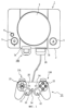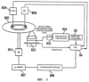 При вращении диска датчик 802, перемещающийся в радиальном направлении относительно диска 800, выдает высокочастотный ВЧ-сигнал впадины, который подается на вход усилителя 803 высокой частоты (УВЧ). Данные таблицы содержания (ТС), специальные коды или верификационные данные, прежде чем они попадут в декодер 82, поступают сначала из УВЧ 803 на вход включенной перед декодером 82 схемы 804 обработки сигналов. Выходные сигналы этой схемы 804 обработки сигналов подаются на вход ЦП 84, в который поступает также выходной сигнал от встроенного в датчик 802 измерителя скорости и сигнал обнаружения с выхода PG 805, и результаты обработки этих сигналов в ЦП 84 используются для управления двигателем 801 через сервоконтроллер 806 и драйвер 807 и для управления схемой 808 стирания. В данном случае PG 805 считывает и выдает импульсные данные (в данном случае магнитные данные), записанные на диск 800, и выдает сигналы, снимаемые при вращении диска с обмотки датчика.