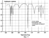 Этап 1. Для некоторой исходной незагруженной камеры проводятся измерения по схеме фиг.7 и определяются частоты, на которых наблюдается резкое падение коэффициента отражения с частотой. Назовем их критическими частотами. Пример получающейся частотной характеристики приведен на фиг.9 применительно к физической модели.