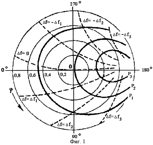 Существует проблема, связанная с особенностями работы источника СВЧ энергии на нестандартную нагрузку. Для микроволновых печей такой нагрузкой является экранированная камера, куда загружаются продукты, подвергаемые обработке. По количеству и характеру взаимодействия с электромагнитным полем продукты могут быть самые разнообразные, поэтому нагрузка может изменяться в широких пределах, в том числе может отличаться от стандартной, создающей согласованный режим. Количественно нагрузка характеризуется импедансом – комплексным сопротивлением. При полном согласовании импеданс нагрузки равен волновому сопротивлению волновода. Режим магнетрона и характер движения электронов внутри его колебательной системы зависят от нагрузки. Связанные с изменением нагрузки явления начали изучать довольно давно. Наиболее полные сведения, отражающие эти явления для конкретного экземпляра магнетрона, дает так называемая диаграмма Рике, измеряемая обычно на предприятии-изготовителе магнетрона. Эта диаграмма представляет собой два семейства кривых на координатной плоскости. В качестве полярных координат часто выбирают фазу и модуль коэффициента отражения около вывода магнетрона, зависящих от импеданса нагрузки. Одно семейство кривых показывает систему кривых постоянной выходной мощности, другое – систему кривых постоянной частоты (изочастот). Параметром изочастоты служит отклонение частоты f от частоты в режиме полного согласования выхода магнетрона. Кривые постоянной мощности показаны на этом рисунке для некоторых трех значений мощности Р, причем P1<Р2<Р3. Область фаз коэффициента отражения, где отдаваемая мощность достигает максимального значения, носит название фазы нагрузки. Аналогично, область фаз, где мощность достигает минимального значения, носит название фазы разгрузки. Для дальнейшего изложения существенно отметить, что при фазе нагрузки у многорезонаторных магнетронов наблюдается значительное ухудшение стабильности работы. При фазе разгрузки работа магнетрона более стабильна, но наблюдаются и исключения из этого правила. При изменении загрузки камеры продуктами изменяется нагрузка магнетрона и коэффициент отражения в тракте, подключенном к магнетрону, а рабочая точка на диаграмме Рике, отражающая режим работы, перемещается. Выбор оптимальной связи магнетрона с камерой микроволновой печи является одной из главных задач при разработке печей последнего поколения. Ниже при описании аналогов приведены примеры решения этой задачи. Под эффективным использованием магнетрона следует понимать не только получение достаточно большой мощности, но и создание режима, благоприятного для длительной эксплуатации прибора.
