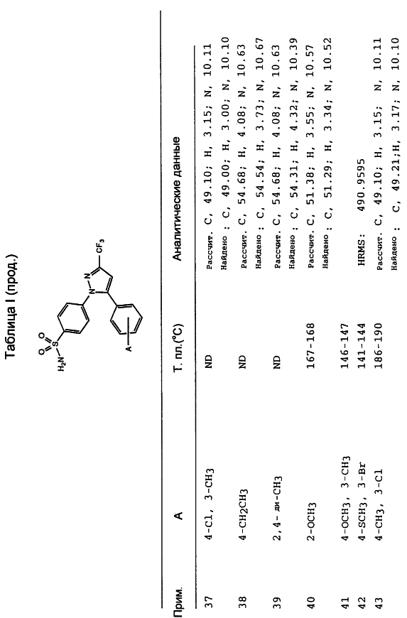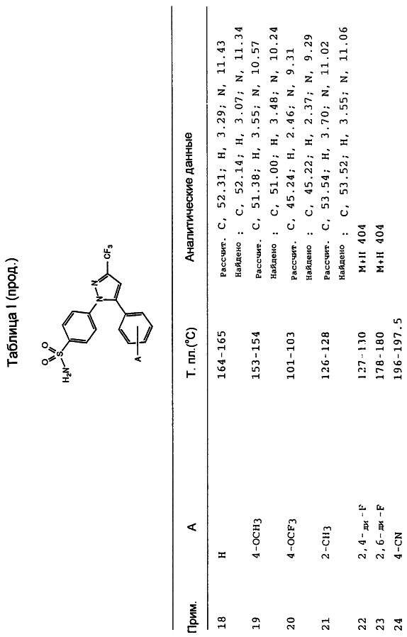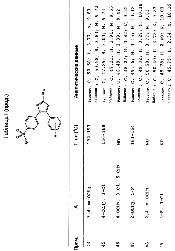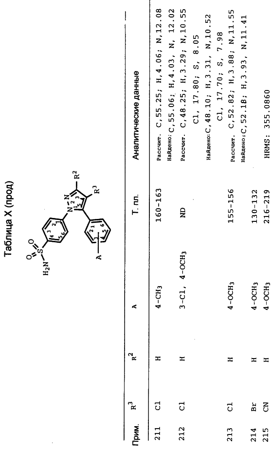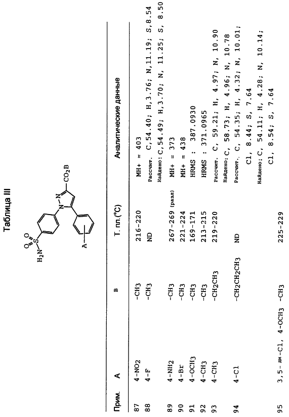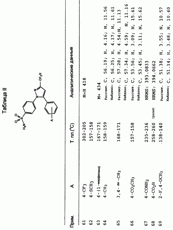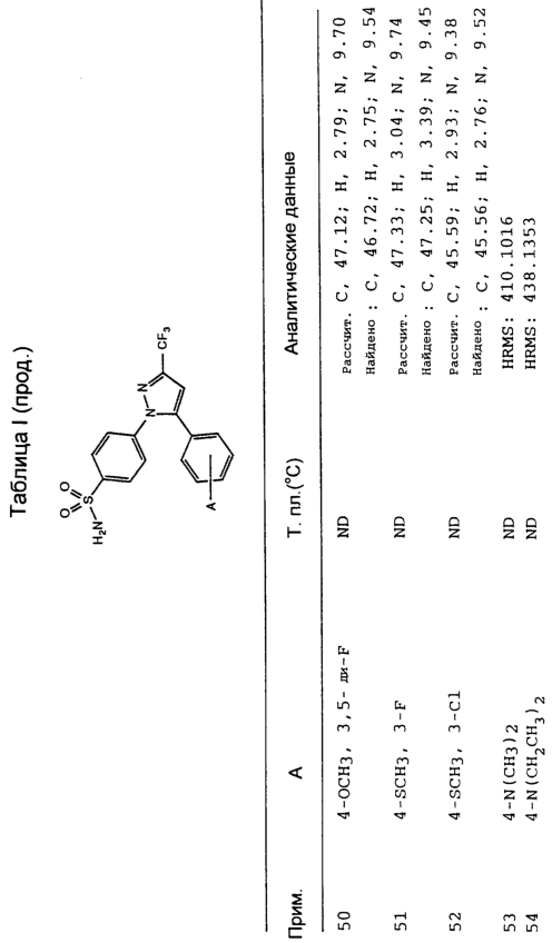 Данное изобретение предпочтительно включает соединения, которые селективно ингибируют циклооксигеназу II по сравнению с циклооксигеназой I. Предпочтительно соединения имеют IC50 циклооксигеназы II меньше, чем приблизительно 0,2 мкМ, и, кроме того, имеют коэффициент селективности (selectivity ratio) ингибирования циклооксигеназы II в сравнении с ингибированием циклооксигеназы I, по крайней мере, 50 и более предпочтительно, по крайней мере, 100. Еще более предпочтительно соединения имеют IC50 циклооксигеназы I больше, чем приблизительно 1 мкМ, и более предпочтительно больше, чем 10 мкМ. Такая предпочтительная селективность может указывать на их способность уменьшить сферу действия (распространение) побочных эффектов, вызванных обычными НСПВЛС.
