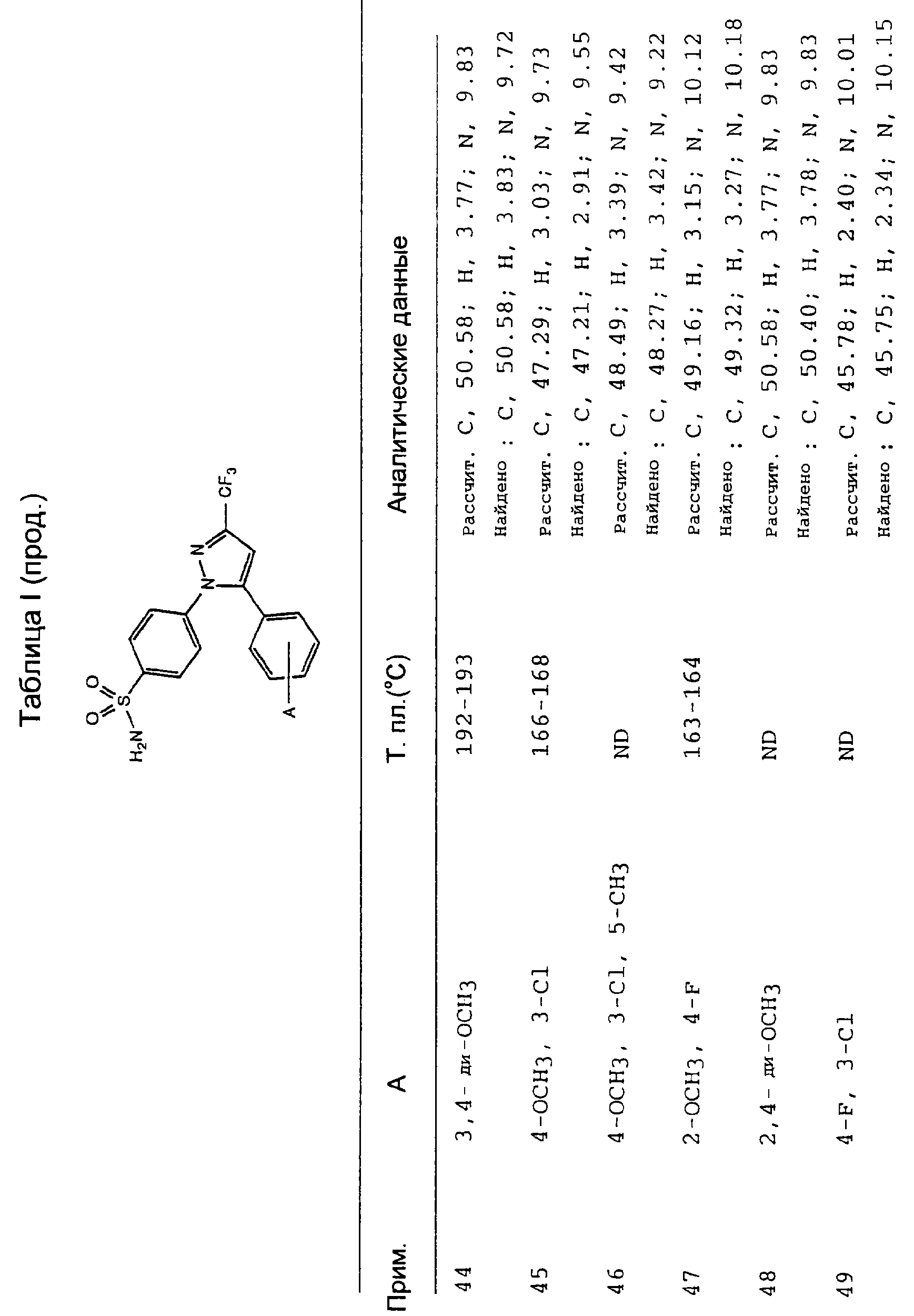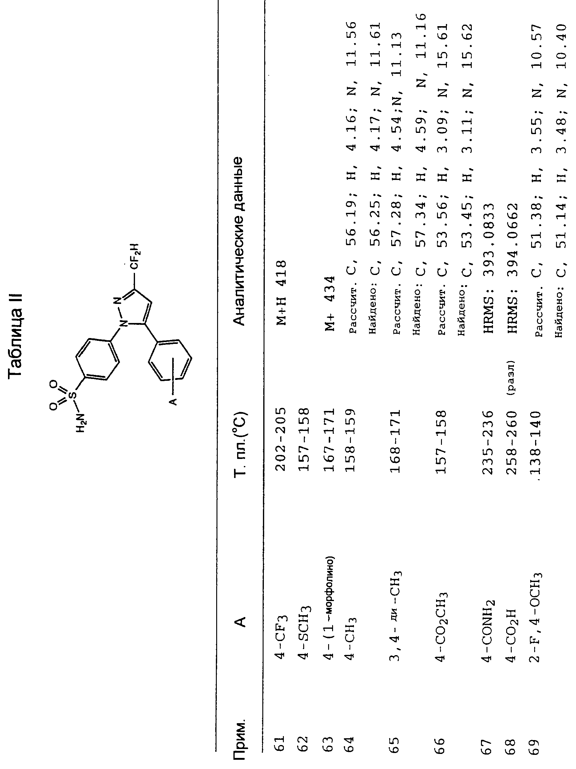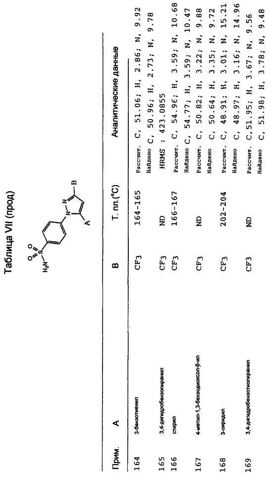 Данное изобретение предпочтительно включает соединения, которые селективно ингибируют циклооксигеназу II по сравнению с циклооксигеназой I. Предпочтительно соединения имеют IC50 циклооксигеназы II меньше, чем приблизительно 0,2 мкМ, и, кроме того, имеют коэффициент селективности (selectivity ratio) ингибирования циклооксигеназы II в сравнении с ингибированием циклооксигеназы I, по крайней мере, 50 и более предпочтительно, по крайней мере, 100. Еще более предпочтительно соединения имеют IC50 циклооксигеназы I больше, чем приблизительно 1 мкМ, и более предпочтительно больше, чем 10 мкМ. Такая предпочтительная селективность может указывать на их способность уменьшить сферу действия (распространение) побочных эффектов, вызванных обычными НСПВЛС.