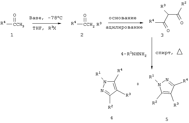 где R4 выбран из фенилэтенила, фенила, нафтила, бифенила, циклогексила, циклопентила, циклогептила, 1-циклогексенила, 2-циклогексенила, 3-циклогексенила, 4-циклогексенила, 1-циклопентенила, 4-циклопентенила, бензофурила, 2,3-дигидробензофурила, 1,2,3,4-тетрагидронафтила, бензотиенила, инденила, инданила, индолила, дигидроиндолила, хроманила, бензопирана, тиохроманила, бензотиопирана, бензодиоксолила, бензодиоксанила, пиридила, тиенила, тиазолила, оксазолила, фурила и пиразинила; где R4 необязательно замещен в положение, способное к замещению, одним или несколькими радикалами, выбранными из фтора, хлора, брома, метилтио, метилсульфинила, метила, этила, пропила, изопропила, трет-бутила, изобутила, гексила, этиленила, пропенила, метилсульфонила, циано, карбоксила, метоксикарбонила, этоксикарбонила, изопропоксикарбонила, трет-бутоксикарбонила, пропоксикарбонила, бутоксикарбонила, изобутоксикарбонила, пентоксикарбонила, аминокарбонила, фторметила, дифторметила, трифторметила, хлорметила, дихлорметила, трихлорметила, пентафторэтила, гептафторпропила, бромдифторметила, дифторхлорметила, дихлорфторметила, дифторэтила, дифторпропила, дихлорэтила, дихлорпропила, гидроксила, метокси, метилендиокси, этокси, пропокси, н-бутокси, сульфамила, метиламиносульфонила, гидроксипропила, гидроксиизопропила, гидроксиметила, гидроксиэтила, трифторметокси, амино, N-метиламино, N-этиламино, N-этил-N-метиламино, N,N-диметиламино, N,N-диэтиламино, формиламино, метилкарбониламино, трифторацетамино, пиперадинила, пиперазинила, морфолино, циклогексилметила, циклопропилметила, циклопентилметила, нитро,