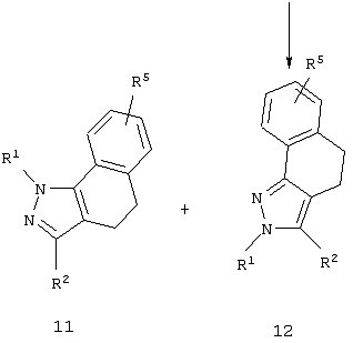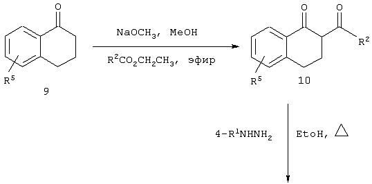В Пат. США №3940418 R. Hamilton описывает трициклические 4,5-дигидробенз[g]индазолы в качестве противовоспалительных средств. Кроме того, R. Hamilton [J. Heterocyclic Chem., 13, 545 (1976)] описывает трициклические 4,5-дигидробенз[g]индазолы в качестве противовоспалительных средств. В Пат. США №5134155 описываются конденсированные трициклические пиразолы, имеющие насыщенное кольцо, связывающее с помощью мостиковой связи пиразол и фенильный радикал, в качестве HMG-CoA ингибиторов редуктазы. В публикации ЕР 477 049, опубликованной 25 марта 1992 г., описываются [4,5-дигидро-1-фенил-1Н-бенз[g]индазол-3-ил]амиды как имеющие противопсихотическую активность. В публикации ЕР 347 773, опубликованной 27 декабря 1989 г., описываются [4,5-дигидро-1-фенил-1Н-бенз[g]индазол-3-ил]пропанамиды как иммуностимуляторы. М. Hashem et al. [J. Med. Chem., 19, 229 (1976)] описывает конденсированные трициклические пиразолы, имеющие насыщенное кольцо, связывающее с помощью мостиковой связи пиразол и фенильный радикал, в качестве антибиотиков.