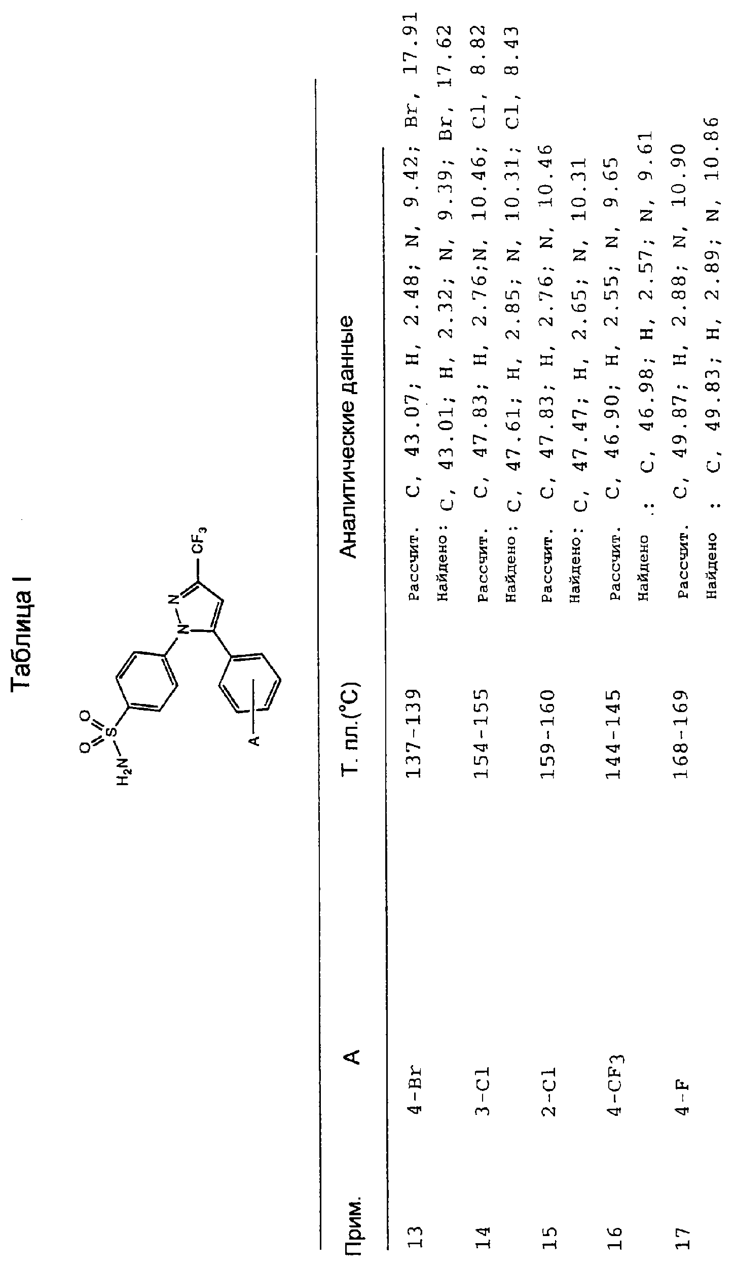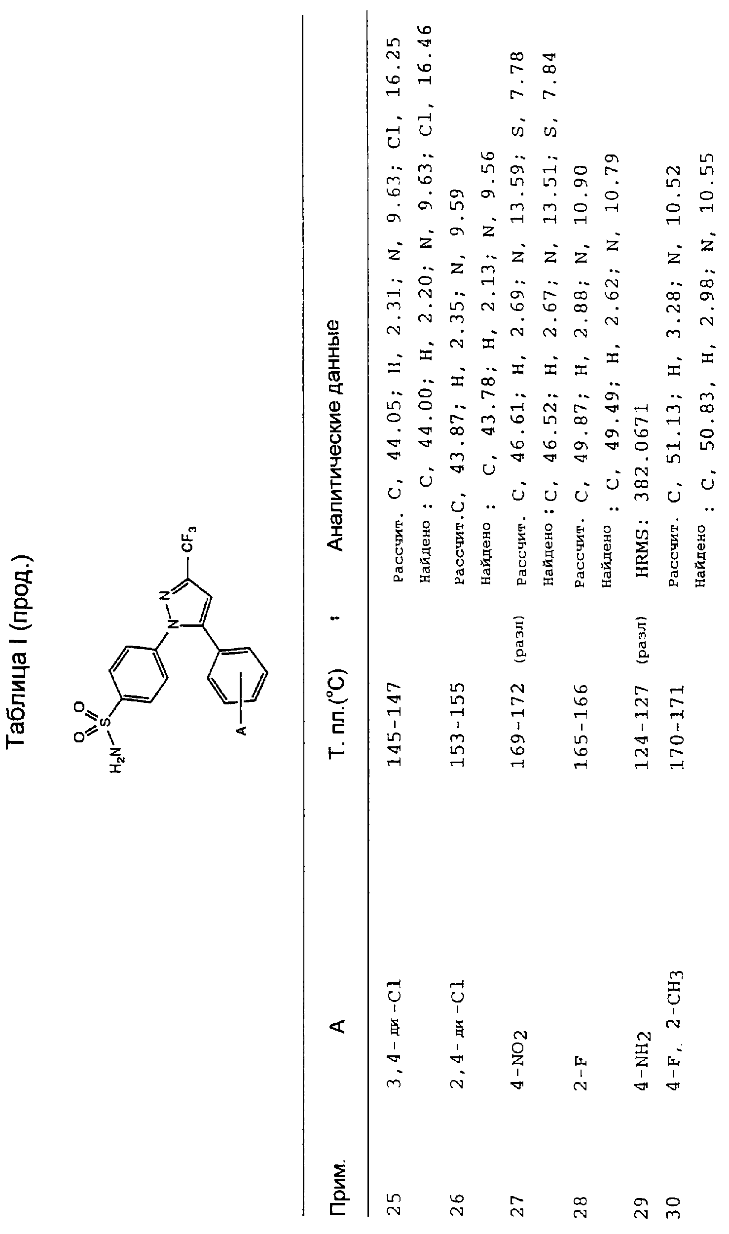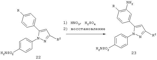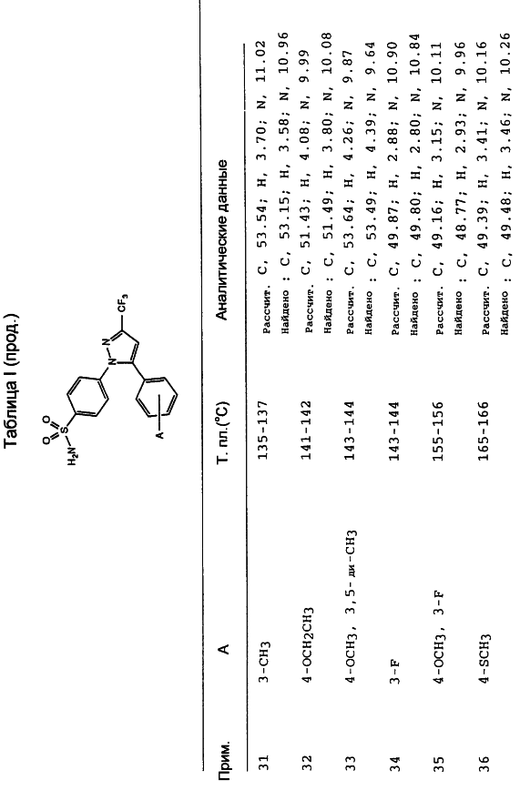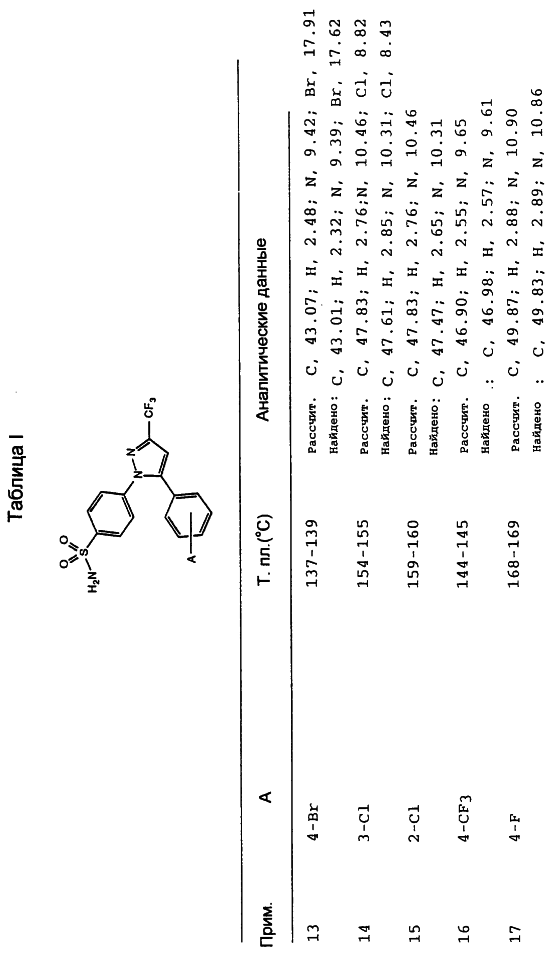 В литературе описаны некоторые замещенные пиразолилбензолсульфонамиды в качестве синтетических полупродуктов. В частности, 4-[5-(4-хлорфенил)-3-фенил-1Н-пиразол-1-ил]бензолсульфонамид получают из соединения пиразолина в качестве полупродукта для соединений, имеющих гипогликемическую активность [R.Soliman et al., J. Pharm. Sci., 76, 626 (1987)]. 4-[5-[2-(4-Бромфенил)-2Н-1,2,3-триазол-4-ил]-3-метил-1H-пиразол-1-ил]бензолсульфонамид получают из соединения пиразолина, и он описан как потенциально имеющий гипогликемическую активность [Н. Mokhtar, Pak. J. Sci. Ind. Res., 31, 762 (1988)]. Аналогичным образом получают 4-[4-бром-5-[2-(4-хлорфенил)-2Н-1,2,3-триазол-4-ил]-3-метил-1Н-пиразол-1-ил]бензолсульфонамид [Н. Mokhtar, Pak. J. Sci. Ind. Res., 34, 9 (1991)].