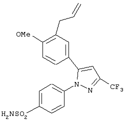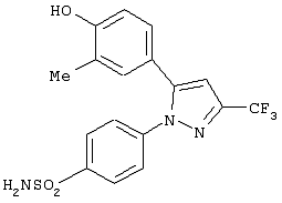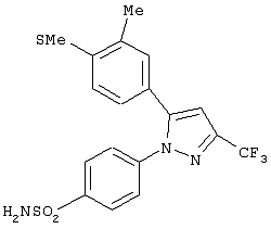 Пиразолы были описаны для использования в лечении воспаления. В Пат. США №5134142 Matsuo et al. описывает 1,5-диарил-пиразолы и, в частности 1-(4-фторфенил)-5-[4-(метилсульфонил)фенил]-3-трифторметил-пиразол, как имеющие противовоспалительную активность.