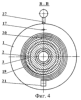 Оси 11 соответствующими шейками с лысками расположены в радиальных пазах 8 дисков 5 и 6 и подвержены воздействию пружинных колец 16, опирающиеся на штыри 9, с целью поддержания постоянного контакта колец 14 с дисками 5 и 6. Радиальные пазы 8 в дисках 5 и 6 позволяют располагаться осям 11 резьбонакатных роликов 10 под углом к общей оси головки, примерно равным углу подъема накатываемой резьбы.
