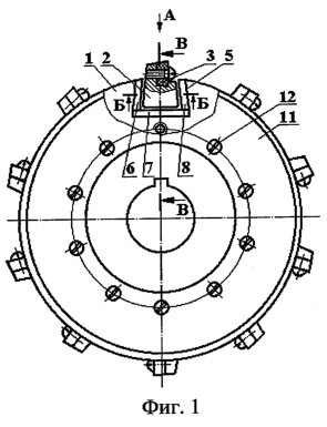С одного торца крышка 10 непосредственно крепится к корпусу 1 винтами 12, а с другого торца крышка 11 через шайбообразную гофрированную пружину 4 также крепится к корпусу 1 винтами 12. При этом выступы гофр пружины 4 должны контактировать с резцами 2.
