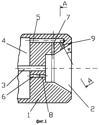 На фиг.1 представлена форсунка для распыливания вязких жидкостей, поперечный разрез; на фиг.2 показан разрез по А-А на фиг.1.