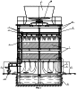 На фиг.1 изображен поперечный разрез градирни с элементами водораспределительной системы.