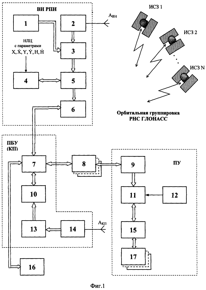 2 – приемное устройство обработки радионавигационных сигналов на воздушном носителе (ПУОРС ВН);