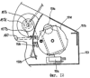 Если с использованием блока управления устанавливают с помощью микропереключателя 151с, который плотно контактирует с переносящим кулачком 151а, что рычаг 151е переместился в положение, показанное на Фиг.11, то привод 151а включается в действие, чтобы повернуть переносящий кулачок 151а. Таким образом, рычаг 151е, который установлен с возможностью поворота на переносящем кулачке 151а и кронштейне 151b, поворачивают в положение, показанное на Фиг.11 так, чтобы он стоял готовый для продажи.