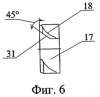 Наиболее предпочтителен вариант выполнения завихрителя 17 с направляющими элементами, имеющими вогнутую рабочую поверхность (см. фиг.6). В этом случае снижаются гидравлические потери на закрутку потока жидкости в цилиндрической камере. В варианте выполнения завихрителя 17, показанном на фиг.6, на обратной стороне направляющего элемента 18 образована плоская кромка 31 с углом наклона к оси симметрии завихрителя, равным 45°. Выполнение данной кромки обусловлено снижением гидравлических потерь за счет исключения резких изломов в канале завихрителя, образованном между соседними направляющими элементами 18.