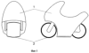 Сущность изобретения поясняется чертежом, где на Фиг.1 представлены фронтальная и боковая проекции игрушки, а на Фиг.2 графически представлен главный существенный признак изобретения, игрушка мотоцикл” содержит (Фиг.1) легкий широкий корпус (1) и широкие колеса (2), расположенные друг за другом и свободно вращающиеся на осях. Колеса выполнены в форме фигур вращения выпуклой кривой вокруг оси, совпадающей с осью колеса. Центр тяжести игрушки смещен вниз. Корпус и колеса имеют такую форму, что расстояние R (Фиг.2) от центра тяжести S до опорной поверхности имеет минимально возможное значение только при строго вертикальном положении игрушки. При увеличении угла наклона игрушки последовательно от 0 до 180°, расстояние R непрерывно увеличивается.