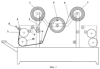 Размещение на смоточном узле дополнительного узла торможения, а на намоточном узле муфты скольжения позволяет регулировать силу прижатия наполнителя к поверхности наносяще-калибрующего валка, которая задается исходной величиной натяжения наполнителя.